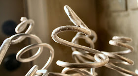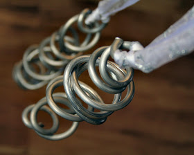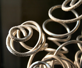 Ornaments I made from salvaged aluminum wire: I have a ton of them; so I couldn't resist hanging a few off the lights : )