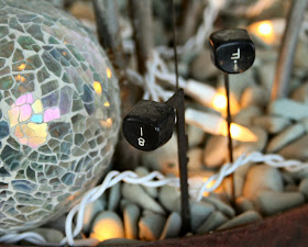 I love using the type-writer keys in planters; they have been in for spring, summer & fall--I'm liking the contrast of the black against all the light colors.....