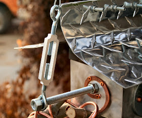 Just finished today; for Gary (brother in law). I think it turned out pretty cute : ) Aluminum, copper, sticks, steel, cable, bearings, little bolts, & washers....