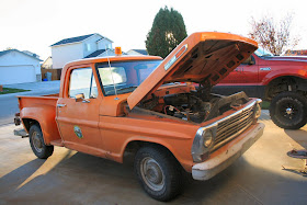 OK: so you can laugh all you want, but Kevin found a truck on Craig's-list; we went & picked it up yesterday in Emmett; & I love it!!! It's old, & rusty & bright (faded) orange, buy I luv it!!! We put some gas in it, & started it up, & it runs great; gets better in town mileage than my big truck!!! We paid $100; and it's been with the city of Emmett since 1969-the year it was built---I wonder if we took it out of town for the 1st time.....it spent it's former life as a city vehicle; notice the light on top (still works--he he he!). Anyway, I think we'll keep it & I'll use it as my in town run-around truck :) I'll have to get some graphics for it!!