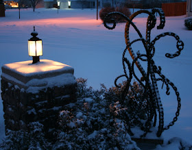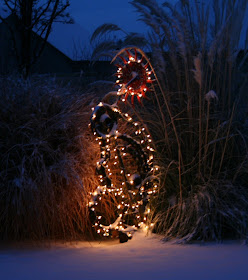 I also added some white lights to one of the sculptures out front; tacky, I know, but I couldn't help myself... The house looks pretty good, I must say & I didn't spend a dime :) Just a bit of time & digging around in the attic for the lights :)