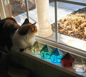 We were discussing the design for the plumb-bob & making the tip out of another material & it just popped into my head---I have a large deck prism that I bought years ago: and I always thought it would be a cool thing to add into a sculpture.... So, I did a search online, & found the perfect sized prism at DeckPrisms.com :) I like the contrast of the glass against the metal, & the prism is the perfect shape---I cant wait to get them (I couldn't resist getting a couple) in the mail!!