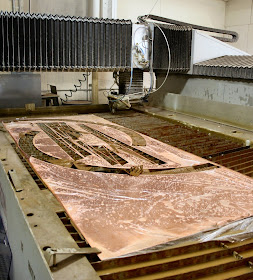 Pieces are being cut this week!! I just got back from Architectural MetalWorks where I got to see the water-jet in action :) Everything should be cut this week & then we get to put the puzzle together...