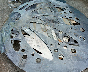 Looks like we will be submitting our 2nd round of files to be cut on the water-jet by Tuesday--Architectural Metalworks is doing the cutting & rolling for us: more on that later--hopefully I can get some pics of the water-jet in action! Will post more later; for now: I'm off to finish my work-space cleaning/organizing mission....