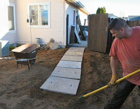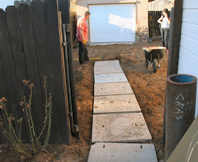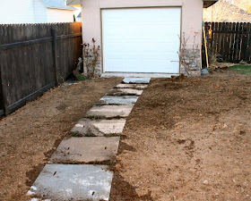 And speaking of gardening; we installed the path last night--made from lovely recycled concrete squares that cost us nothing :) This path is for getting the lawn mower from the shed to the front of the house easily; since I still have some lawn to mow...