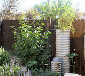Wandering to the back; this is the wild side: I just let everything pretty much grow wild; a mix of perinials, herbs, shrubs, & industrial tidbits....